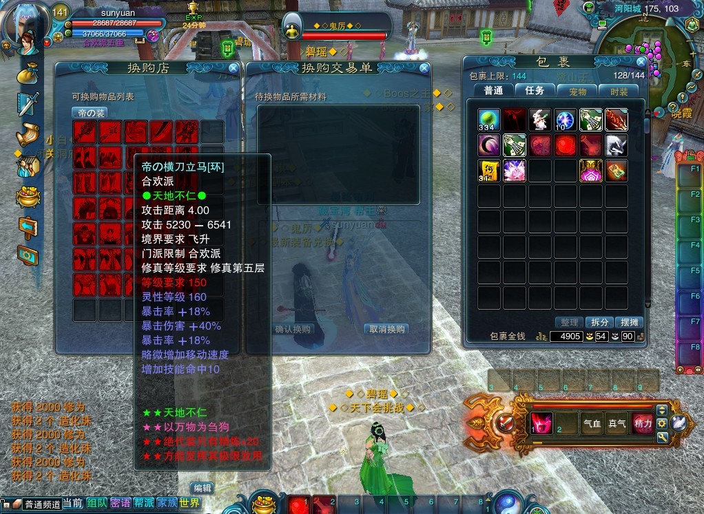 友情提示:●兑换通天秘境传送符所需的证明,可传送至通天之门,击杀BOSS通天三将获得。