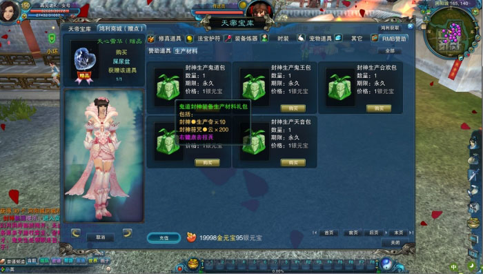 神域小怪掉封神装备生产材料:风雨雷电云(需要先完成封神任务才可进入该地图)