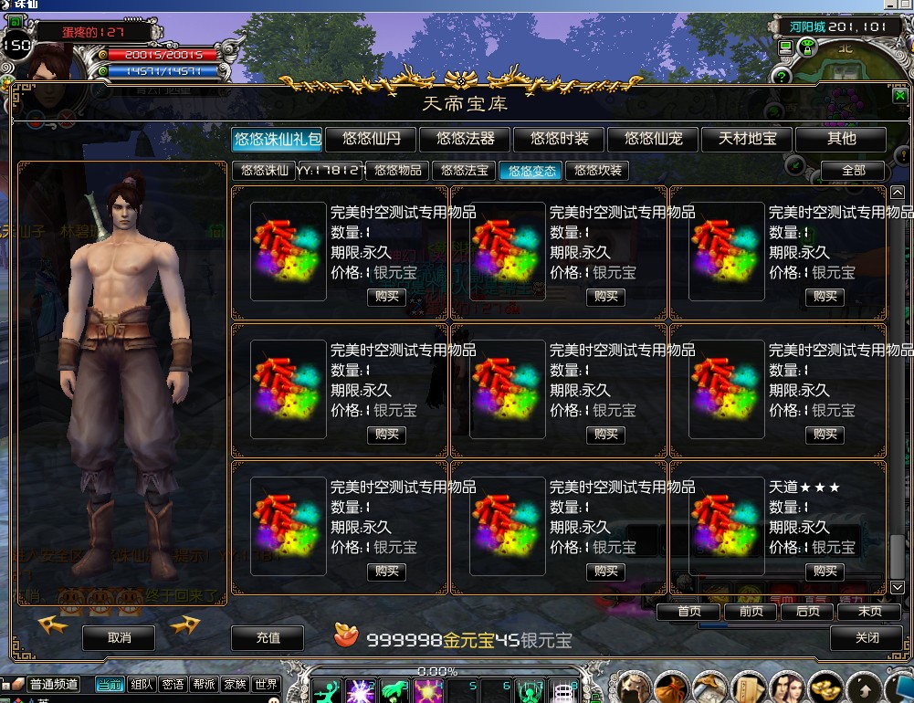 2月4日更新:修改商城09时装栏变悠悠测试栏,增加变态装备和法宝