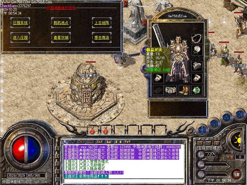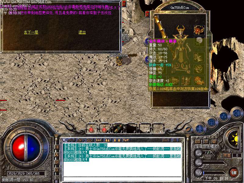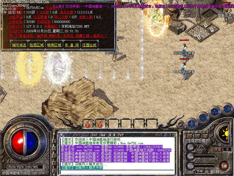GM去搜服---1.85内挂2009年9月最新版本,本服在1.85的基础上添加了新地图【幽灵船-蚂蚁洞-安其拉】等新地图金牛装备元素灵魂系统!