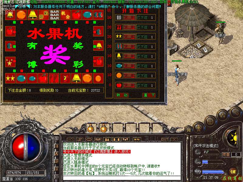 3:增加了在线娱乐功能(装备发光系统,可视水果机,元宝抽奖)