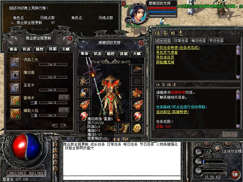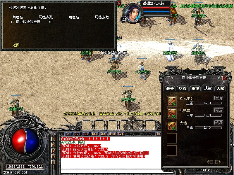 3. 支持盛大“天降神技”所有技能。支持盛大“二期强化技能”支持盛大2.0转生