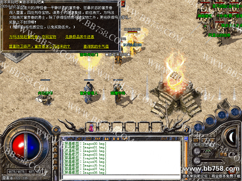 问:元宝去哪里打?答:最新推出元宝之地 [传送员中的险恶区域]13大地图都刷[元宝使者.必暴100元宝]提供玩家打元宝的好地方.各大BOSS也会暴出!