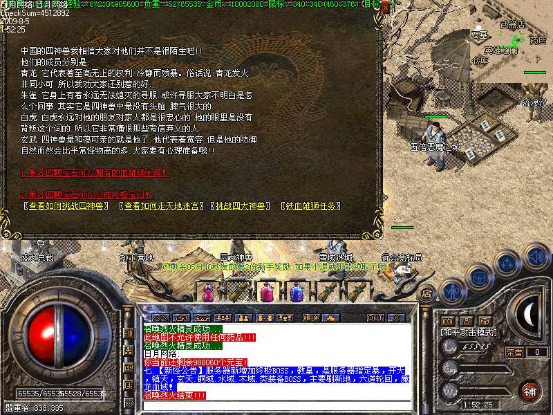 9.【铁血雄狮任务】服务器的四大神兽任务,只要集齐四个神石即可兑换一头超强大华丽的铁血雄狮座骑,骑上之后游戏速度快人一倍!