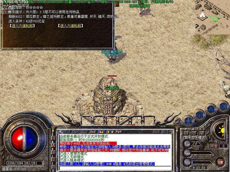 c.特别地图:六道轮回,普通BOSS60分钟刷新,教皇120分钟刷新,可以暴出开天!为服务器最特色地图