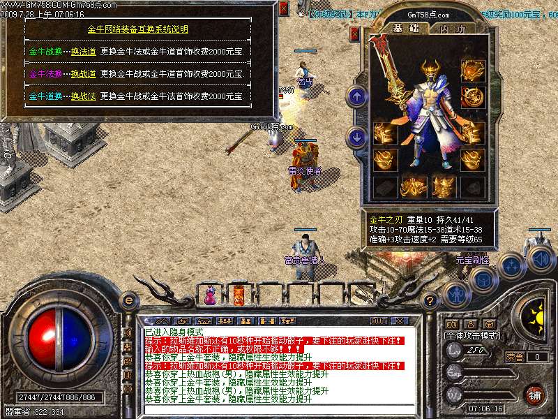 【重要提醒】 新手上线后,系统自动送:玛法内功心法,在新手村点:酒神第子,学习内功.