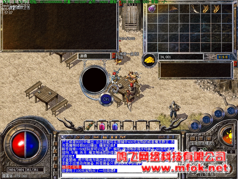 鸣飞科技的本版本更新加入护体神盾.神武术.飓风破.英雄护体神盾所有新书在赤月恶魔身体上爆出.提高除战战合击外.其他合击威力1倍.增加(雷炎洞穴传送)针对找不到酒馆在那里的玩家!