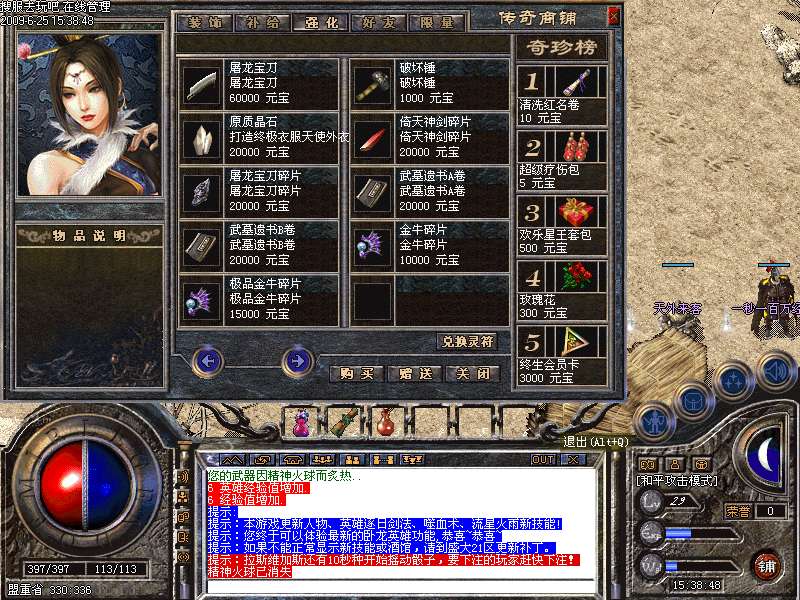 本游戏的宗旨:不送任何东西,不售等级,装备不讲价.游戏是公司化营运绝对长期、公平、公正、免费、稳定!