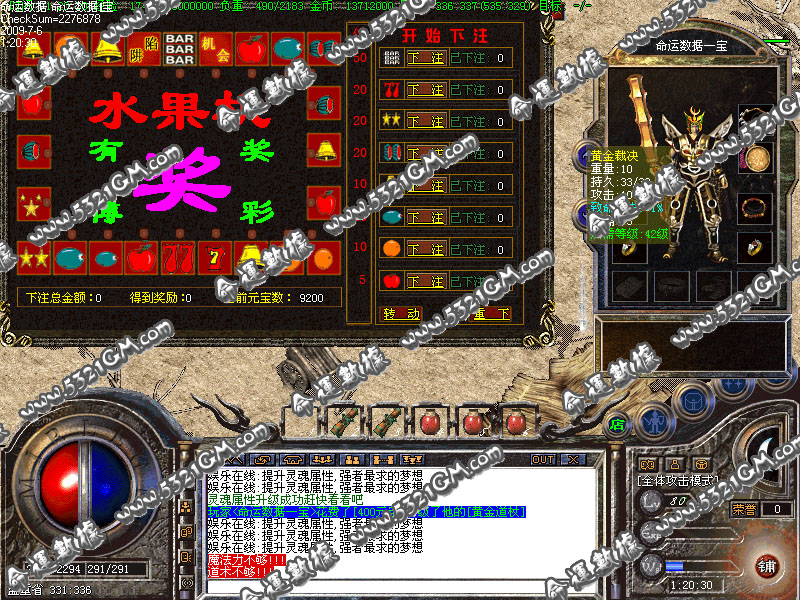 【游戏特色】灵魂属性.行会徽章.等级传送.冲级大奖.抢庄赌博.装备回收.装备拍卖.声望功能。