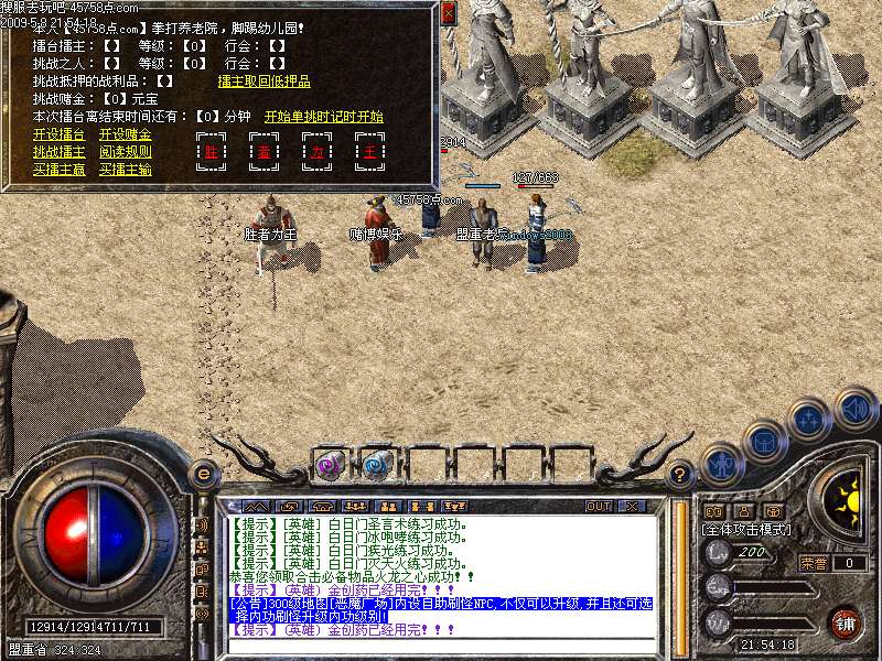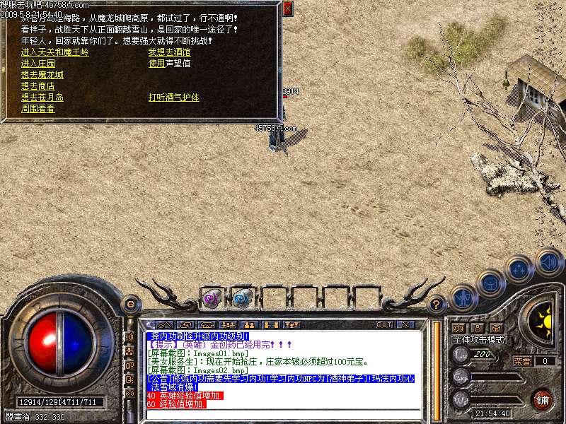 新加入超级地图:恶魔广场二层有内功怪物,并且有恶魔神龙出现,除掉此怪物可以享受级别+1待遇!