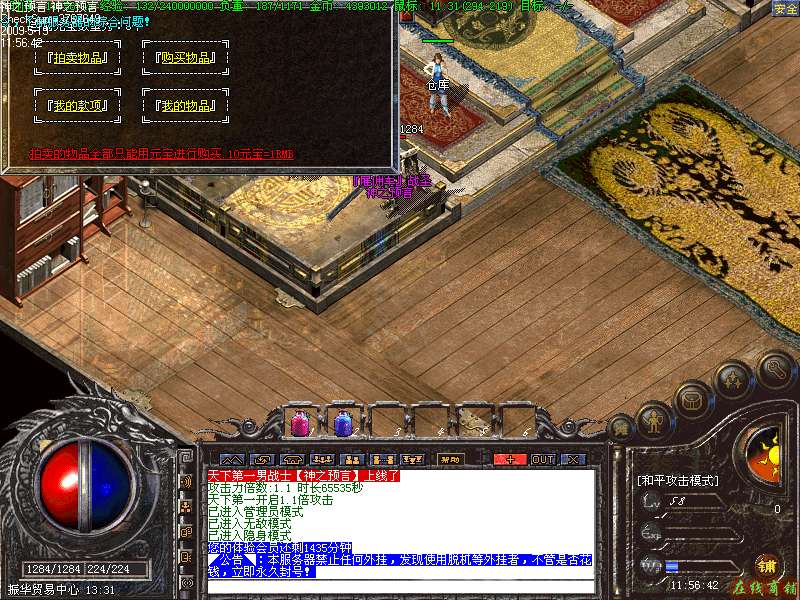 13:游戏商贸中心,玩家可以到那里回收装备换元宝,也可以摆摊,让玩家没有元宝也可以用装备换元宝