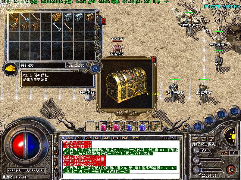 ★[修改]自动刷BOOS功能,每半小时刷一只送宝之神,每只必爆一件装备(赤月、极品、终极),并有刷怪地点提示.