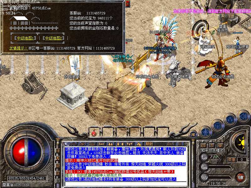 PK之地每1个小时刷2个终极BOSS,爆高级装备、经验卷和元宝。