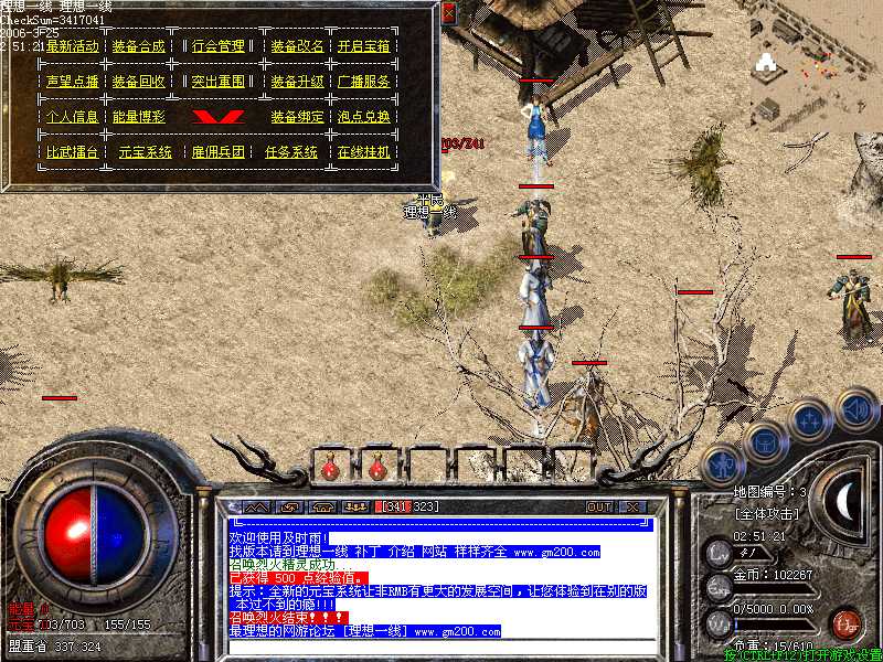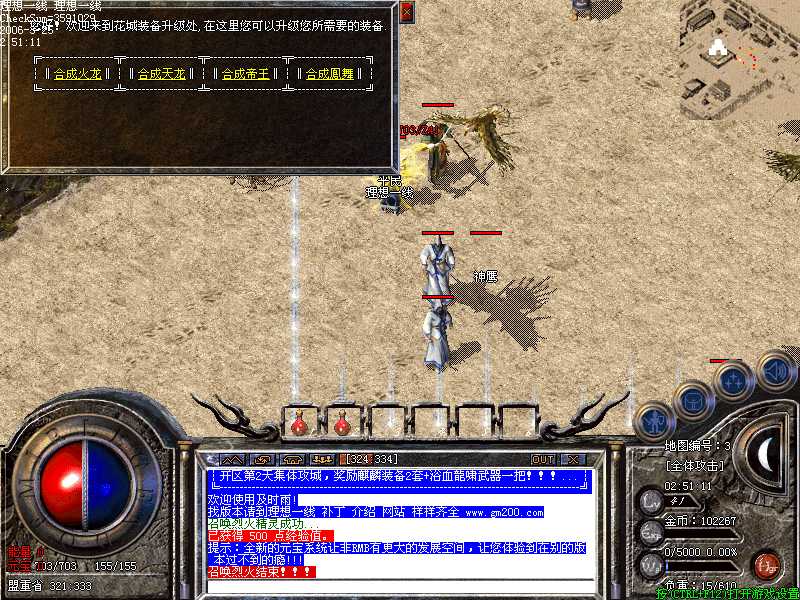 ★★打到的装备可以合成高级装备,比如2个普通开天就可以合成+1的,2个+1的开天又可以合成+2的开天。所有装备相关的具体操作可以查看土城装备管理员NPC。