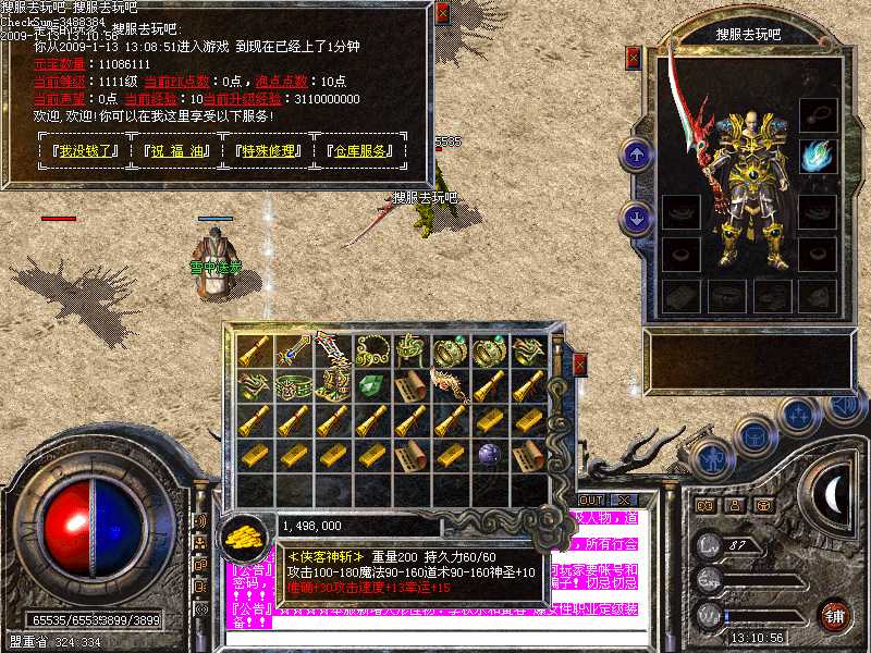 8.经过数日的测试,完成游戏的整体协调性;升级速度 怪物爆率 装备属性 PK职业平衡性做了重大调整(本