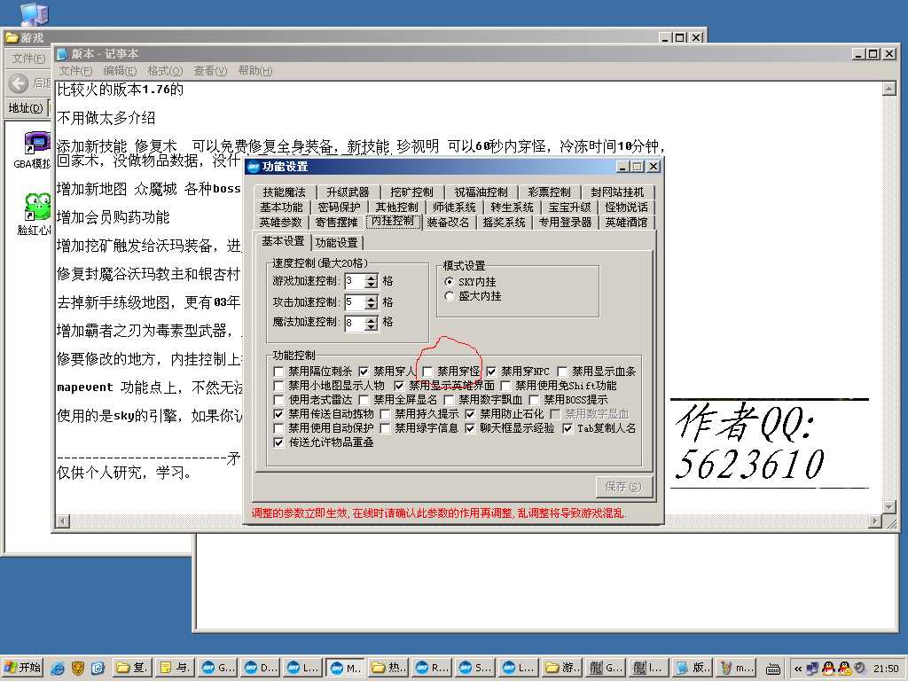 要修改的地方,内挂控制上把禁用穿过怪物去掉,要不然珍视明技能无法使用