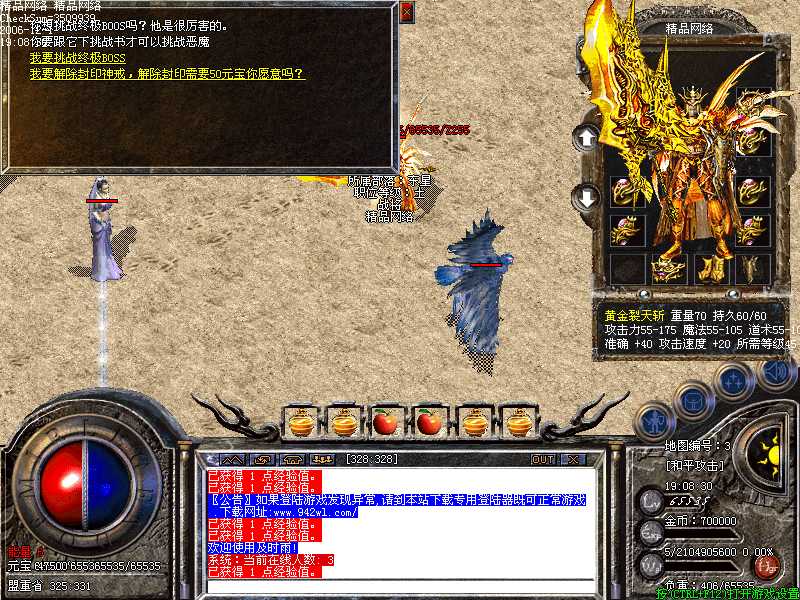 一:本服最大看点,新地图,新装备,新怪物.全国独一无二.请到我们的官方网站下载最新补丁,就能在传奇里面畅游和体验枫月传奇给你带来的无限精彩!~~