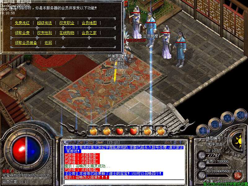 十一:沙成员还可以享受特殊待遇,每天24小时都可以回沙皇宫内领取1.8倍的练级经验.进驻沙巴克,让你练级无忧!!!