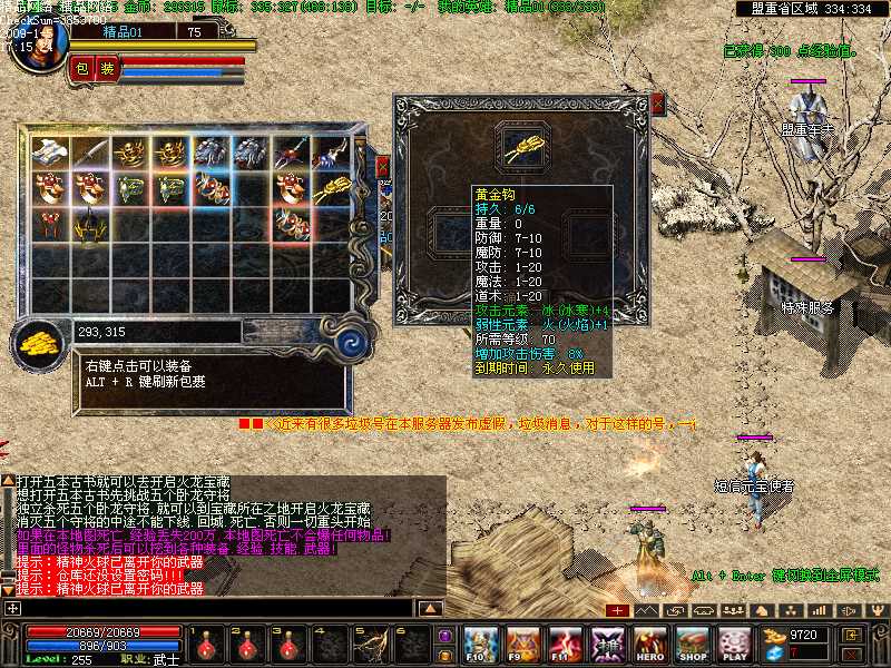 !.经过数日的测试 完成游戏的整体协调性;升级速度 怪物爆率 装备属性 PK职业平衡性做了重大调整(本服决不是让普通玩家没办? 法生存的游戏类型)