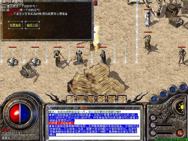 ★★打到的装备可以合成高级装备,比如2个普通开天就可以合成+1的,2个+1的开天又可以合成+2的开天。所有装备相关的具体操作可以查看土城装备管理员NPC。