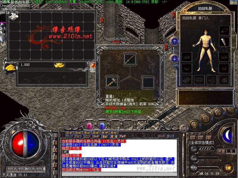 - ☉ GOM引擎传奇端游【超级骷髅王之五行世界】Win一键端+配套补丁网站+架设教程