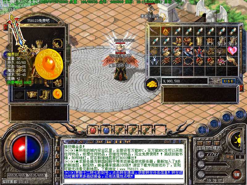 G(*)★本服务器为韩国超新中等变态装备游戏服务器,最新加入了N多的新地图,新怪物,装备爆率提高100倍!请您下载专用游戏补丁,否则可能无法看见新地图。下载地址:www.758123.cn