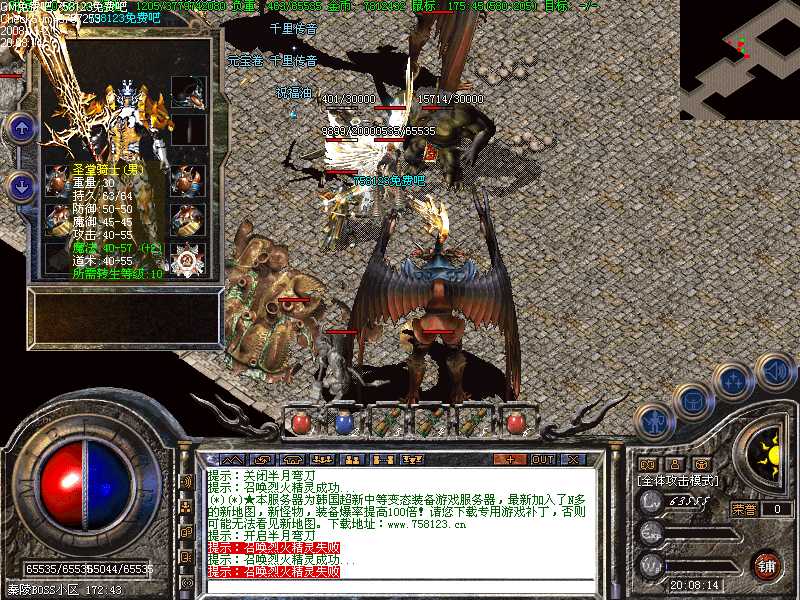 GM免费吧新韩国中变天罡北斗十八罗汉黄金宫嗜杀天下版G(*)★本服务器为韩国超新中等变态装备游戏服务器,最新加入了N多的新地图,新怪物,装备爆率提高100倍!请您下载专用游戏补丁,否则可能无法看见新地图。下载地址:www.758123.cn