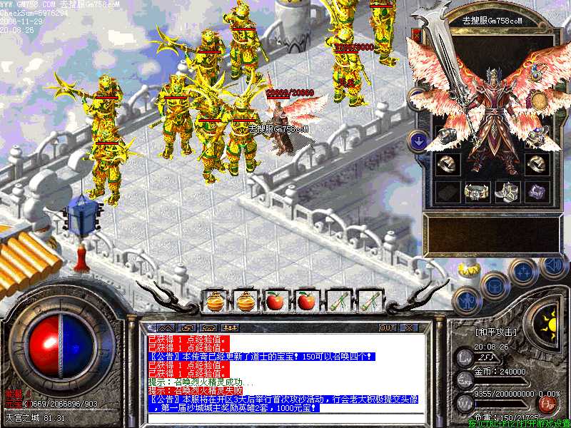 一:本服最大看点,新地图,新装备,新怪物.全国独一无二.请到我们的官方网站下载最新补丁,就能在传奇里面畅游和体验枫月传奇给你带来的无限精彩!~~