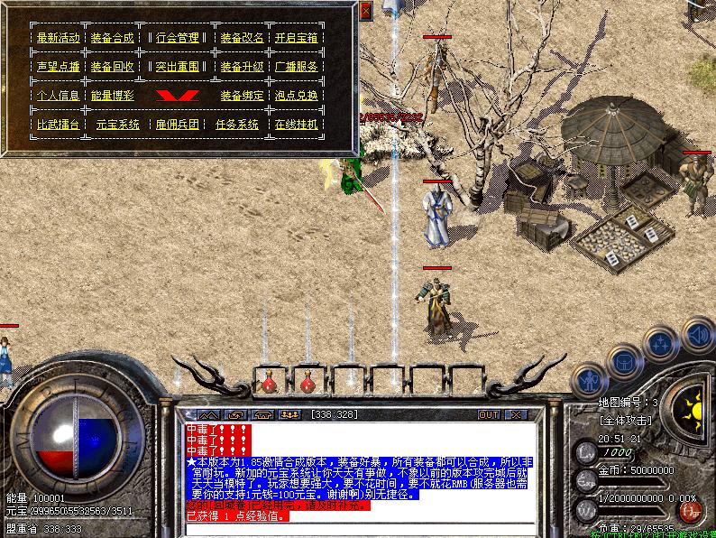 1.85激情合成版本,装备好暴,所有装备都可以合成,所以非常耐玩。新加的元宝系统让你天天有事做,不象以前的版本攻完城后就天天当模特了。玩家想要强大,要不花时间,要不就花RMB(服务器也需要你的支持1元钱=100元宝。谢谢啊)别无捷径。