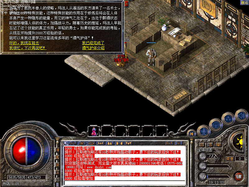 5.天龙八部增加装备升级装备系统!失败装备不会碎!(目前设定为战神,圣魔,真魂首饰+黑铁矿升级相应的装备属性/需要注意的是: 如果您的包里有战神,又有真魂的话,升出来的装备属性随机!升级装备的同时,清空背包!)