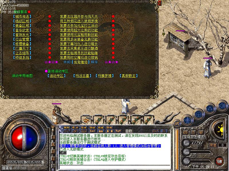 【游戏服务功能】:取消了盟重安全区的其他NPC,整合部分NPC功能到里面,方便玩家点击,节约服务器资源。
