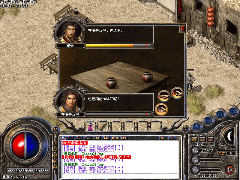 服务器开区第当天天晚上11点 ,1点,3点分别进行开区活动喜欢打装备和元宝的玩家千万不能错过!酿酒材料可以在酿酒材料地图免费打到,加上泉水你就可以酿出自己喜欢的酒了哦,具体请看官网和咨询酒馆老板娘!