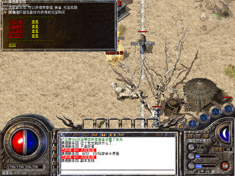 [潇洒网络]独创四大副本挑战,实现真正的副本系统.玩家进入副本独立随机刷怪,刷出的怪物数量会在进入时以红字提醒玩家