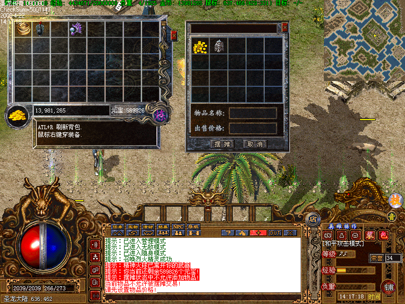 摆摊功能 摆摊地点必须要在安全区,可以随意选择元宝出售还是金币出售