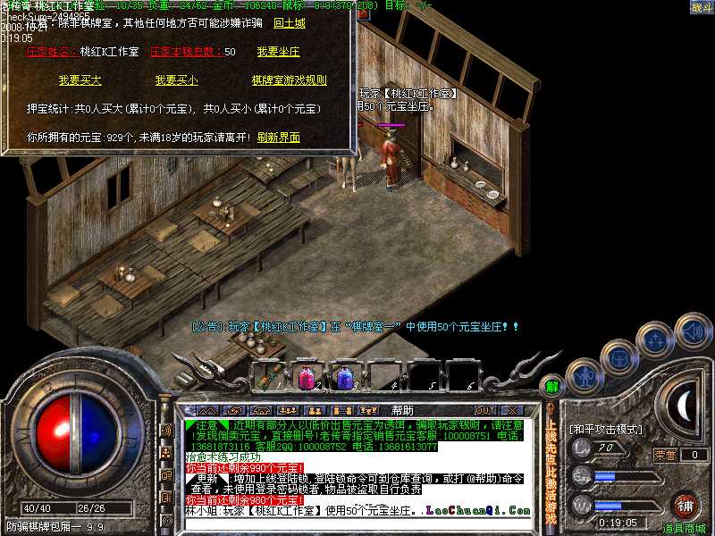 6:增加仓库锁,让玩家账号更安全,增加棋牌室,玩家可以买色子到里面进行游戏!