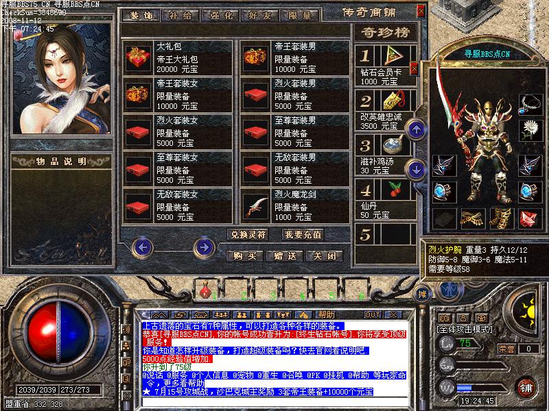 【元宝系统】寄卖系统与元宝系统药都传奇结合。元宝系统:玩家可以用元宝购买到各种物品及装备。