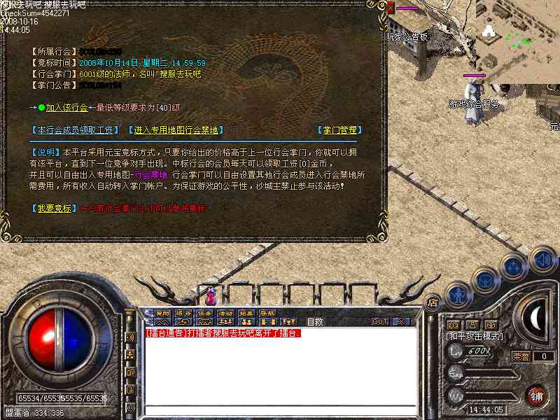 【行会招募系统】:元宝竞标,加入一个行会专用地图,由行会掌门控制。