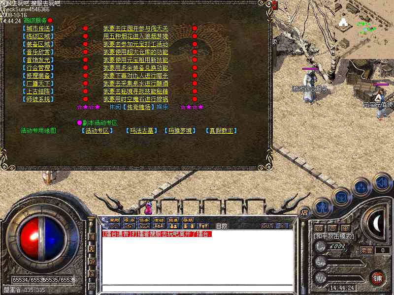 【游戏服务功能】:取消了盟重安全区的其他NPC,整合部分NPC功能到里面,方便玩家点击,节约服务器资源。
