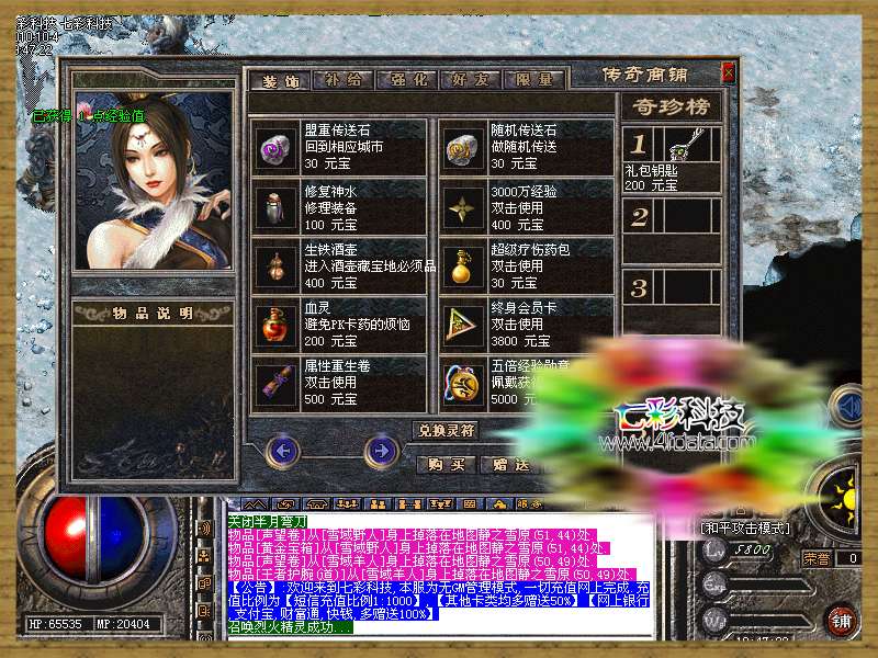 五:雷炎、雪域等收费地图,爆高级装备、宝石、官衔证,爆率超高。