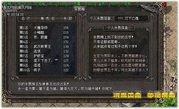 【杀戮排行】男人从来只有征服或者屈辱。赶紧让你的名字在杀戮榜上闪烁光彩吧