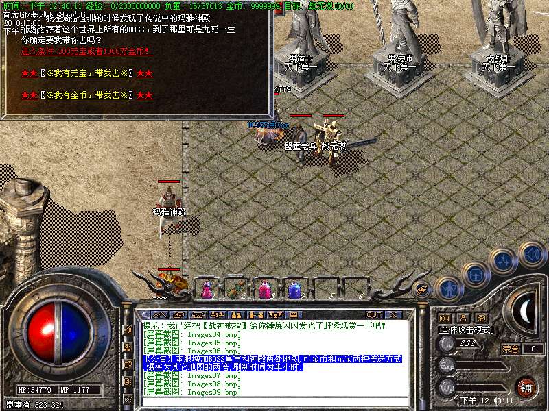 本服增加BOSS皇宫和神殿两处地图,可金币和元宝两种传送方式,爆率为其它地图的两倍,刷新时间为半小时.