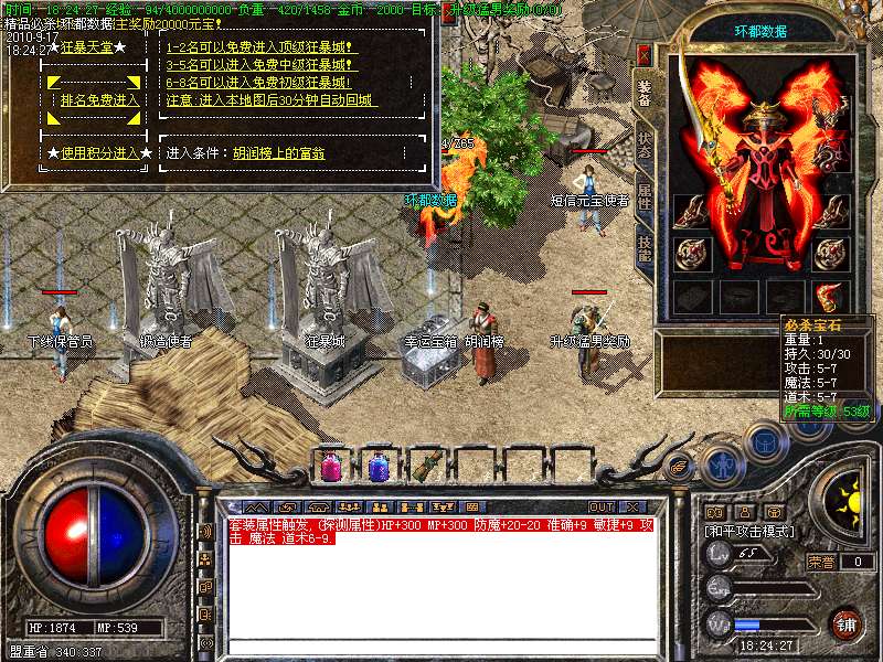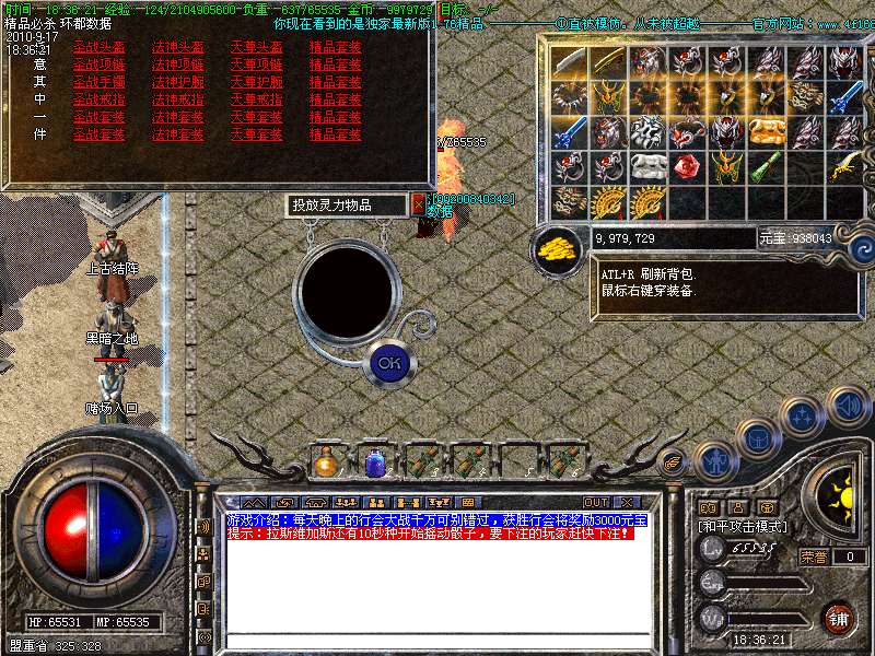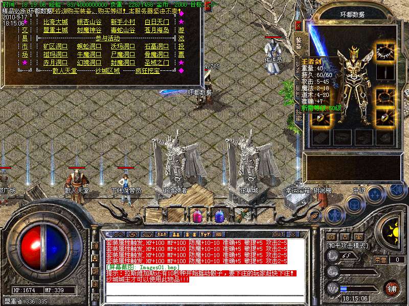 4.特别地图:王者天堂为打宝天堂,每天16点开放.此地图任何大小怪物都可以有机率暴出赤月类装备和精品首饰、终极武器!