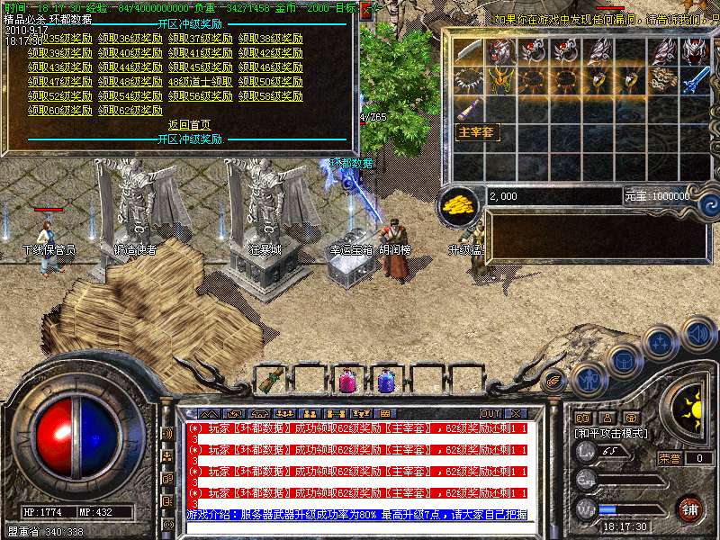 9. 上线找新手接待员在新人练级场可快速到30级,系统送祖码套!
