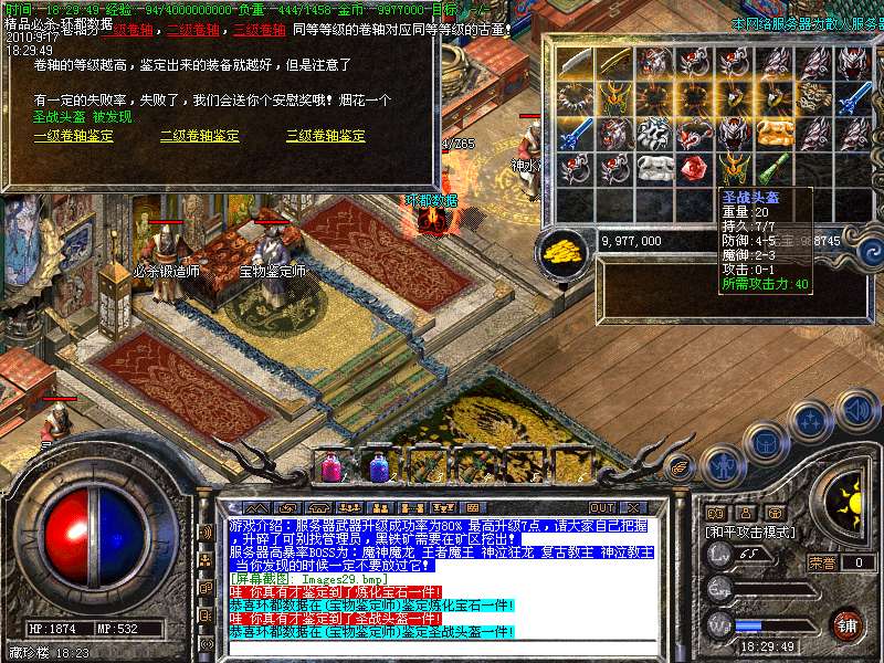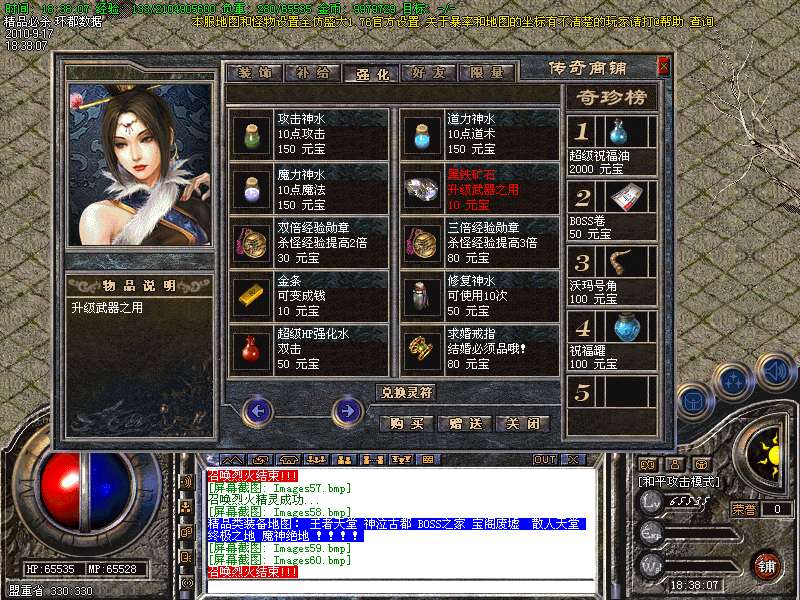 2.武器可升级7点.每次升级时间只需要1秒钟.特别更新:虎年大发、王者天堂的BOSS刷新时间和数量!想打好装备 就在虎年大发,王者天堂!