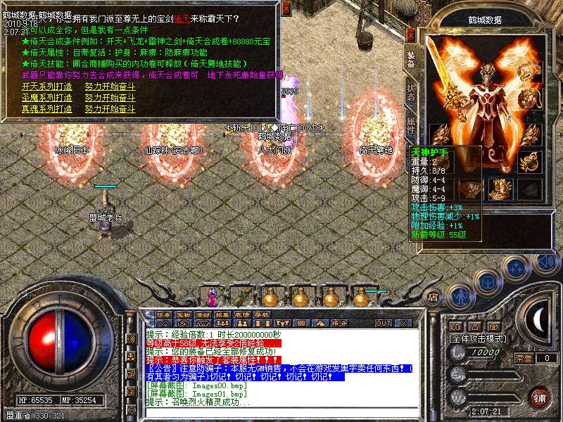 服务器开放了装备合成功能,可以拿中级装备合成高级装备,详细介绍见土城左下角NPC!