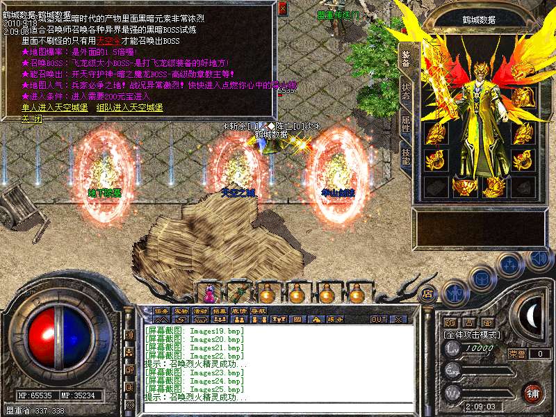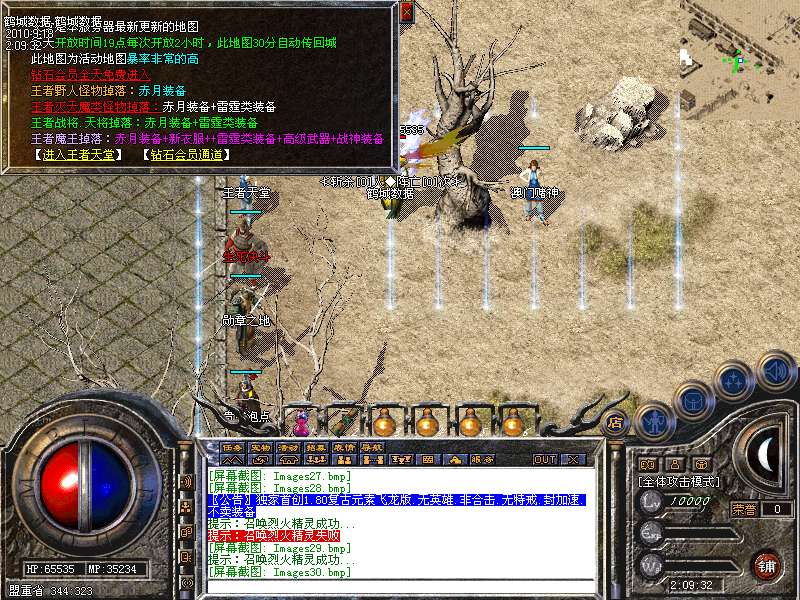 特别地图:王者天堂为打宝天堂,每天15点.19点.0点开放.此地图任何大小怪物都可以有机率暴出赤月类装备和雷霆.战神装备.王者魔王可暴出终极武器!