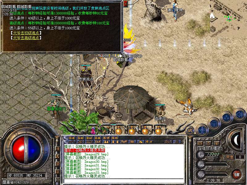 快速升级:强烈推荐 贵族泡点 和 元宝练级地图!聚灵珠(大)和(小)也是快速升级的通道喔 魔龙 烟花教主 王者天将 摇钱树等BOSS会爆