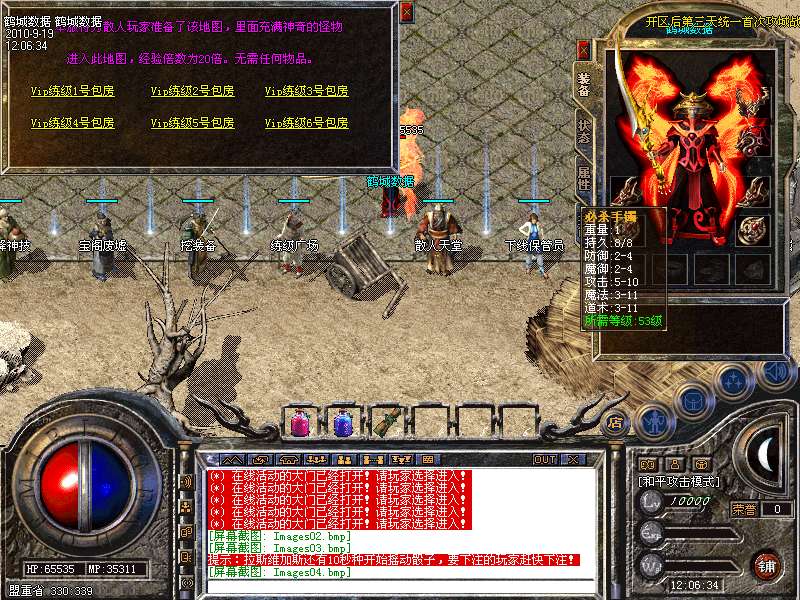 特别地图:王者天堂为打宝天堂,每天16点开放.此地图任何大小怪物都可以有机率暴出赤月类装备和精品首饰、终极武器!