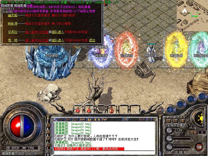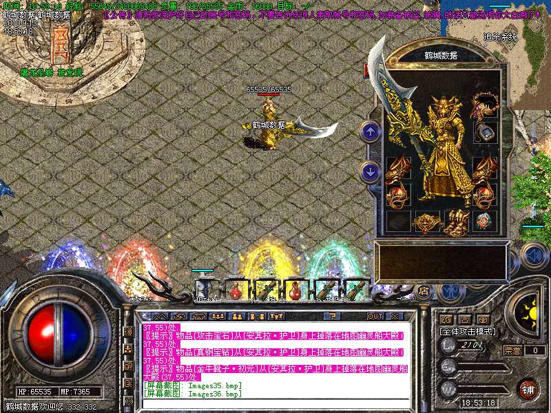 1.85内挂2010年最新版本,本服在1.85的基础上添加了新地图【幽灵船-蚂蚁洞-安其拉】等新地图金牛装备元素灵魂系统!