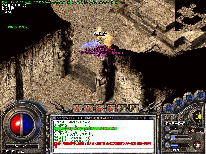 特别地图:主宰天堂为打宝天堂,每天16点开放.此地图任何大小怪物都可以有机率暴出赤月类装备和精品首饰、终极武器!